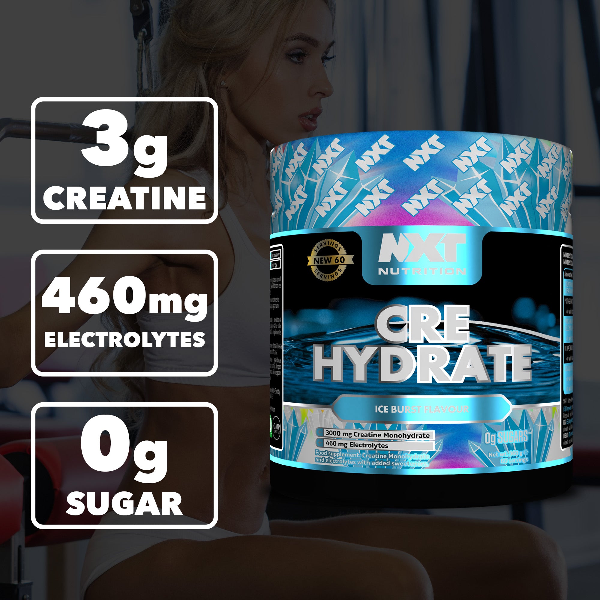 Cre-Hydrate is NXT Nutrition’s advanced Creatine and Electrolyte mix, designed for optimal hydration and performance.