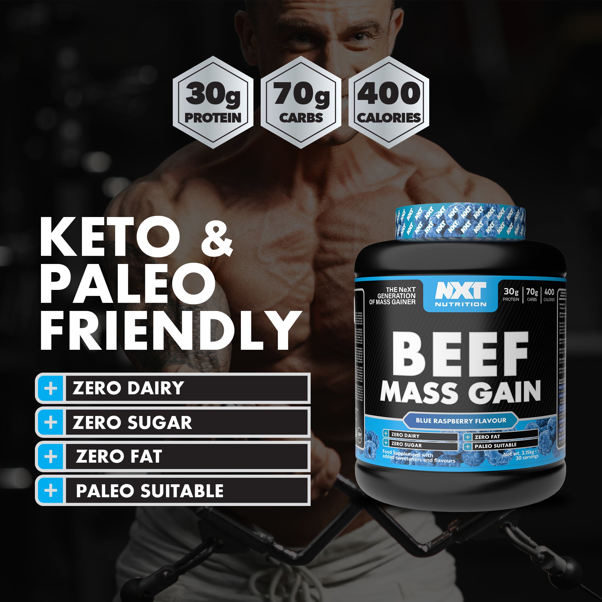 Beef Mass Gain is NXT Nutrition's advanced weight gain formula.